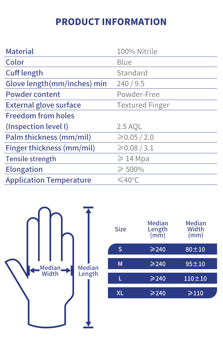 Our medical examination nitrile gloves are intended to be worn on the hands of healthcare personnel to prevent contamination between patients and examiners. This is a single-use, powder-free, non-sterile device.